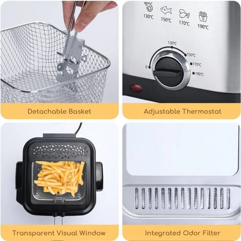 – Friggitrice compatta da 1,5 L in acciaio inox, 1000 watt