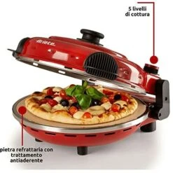 Cuoci Pizza Con Pietra In Ceramica Ø32cm Finestra Trasparente 2 Elementi Riscaldanti Max 400° Timer