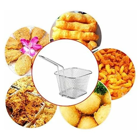 Cestello per friggere in acciaio inossidabile Costruito in acciaio inossidabile di alta qualità, robusto e durevole, privo di corrosione, non si arrugginisce, non si piega, non si rompe o si indebolisce facilmente Il materiale in acciaio inossidabile per uso alimentare consente di toccare direttamente gli alimenti in modo sicuro e facile da pulire Perfetto l’impugnatura in metallo consente alle dita goffe di tenersi ben salde. È anche comodo da riporre poiché il manico può essere appeso al muroPiccolo cestino per patatine fritte ideale per patatine fritte, bastoncini di pollo, anelli di cipolla, gamberetti o qualsiasi altro cibo fritto, potrebbe anche essere un cestino per snack Cestino per patatine fritte individuale ideale per un bar, ristorante o a casa tua, permettendoti di cucinare, bollire o friggere cibi con facilità, molto conveniente
