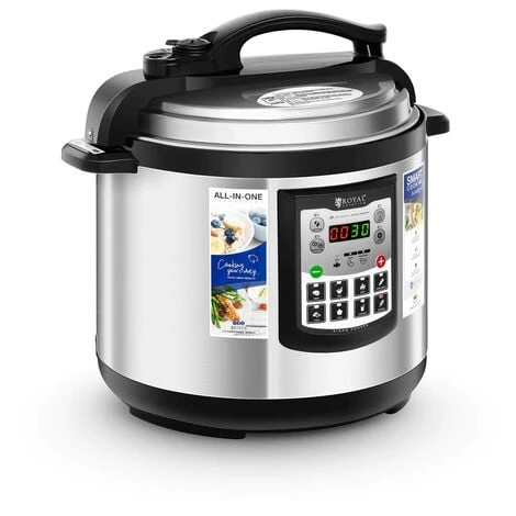 Pentola a pressione elettrica – 8 litri – 1250 WRoyal Catering vi offre una pentola a pressione elettrica RC-HPC8L, uno straordinario tuttofare per la cucina. Le pentole a pressione tradizionali e quelle per il riso sono sostituite dall’ultima tecnologia di Royal Catering. Il mix di acciaio lucido e nero lucido può essere integrato in modo ottimale ovunque. Con un volume di 8 litri e 11 programmi preimpostati questa pentola è ideale per qualsiasi cucina, sia in casa sia nel settore della ristorazione. Il dispositivo ha una valvola di sicurezza per il vapore, un pannello di controllo intuitivo, così come un pot interno antiaderente. Soddisfa le tue esigenze di ristorazione con questo eccezionale apparecchio da cucina!