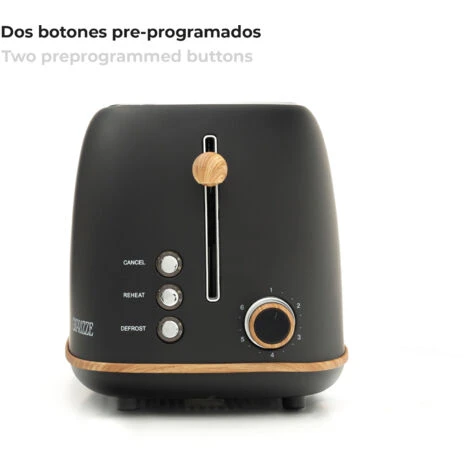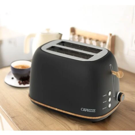 Tostapane Caprizze Kaito Con Doppia Fessura Extra Ampia 6 Livelli Di Tostatura Design Vintage Con Effetto Legno Nero Opaco